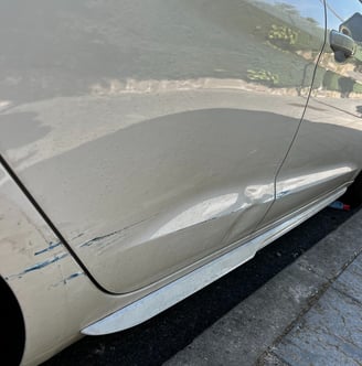 No solo arañado, sino abollado.