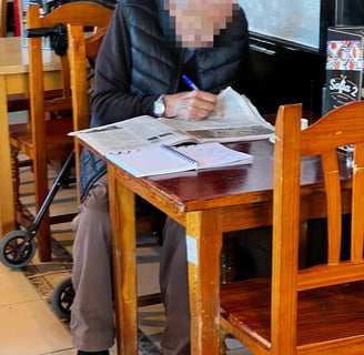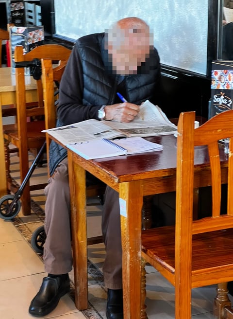 Se llama Ángel y todos los días sale de su residencia para tomar café en el bar más cercano.